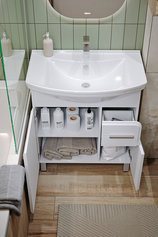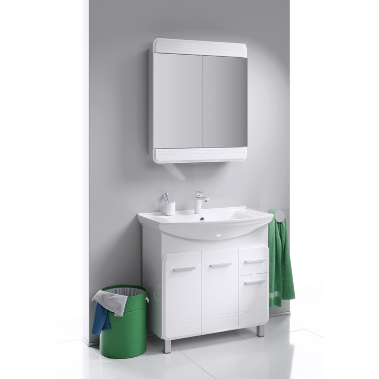 Коллекция представлена напольными тумбами в трёх размерах: 65, 75, и 85 см по ширине и комплектуется керамическими умывальниками производства российского завода Kirovit. Фасады коллекции производятся из МДФ (древесноволокнистой плиты повышенной плотности) и покрыты 5-ю слоями белой глянцевой эмали. Боковины из ЛДСП (древесностружечной плиты повышенной плотности) также окрашены. Коллекция комплектуется зеркальными шкафами, двери которых открываются к центру. На все двери установлены мебельные петли с интегрированным доводчиком, обеспечивающим плавное закрывание.