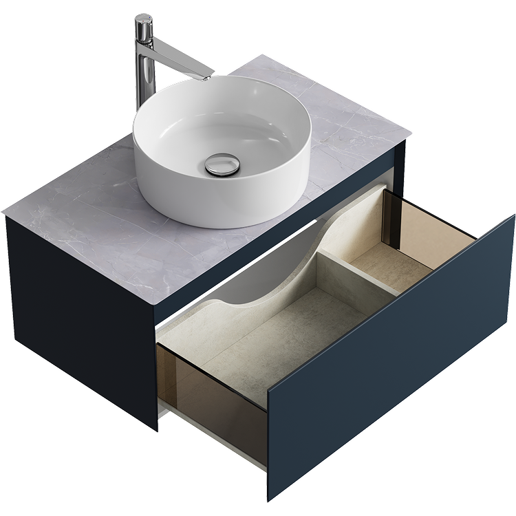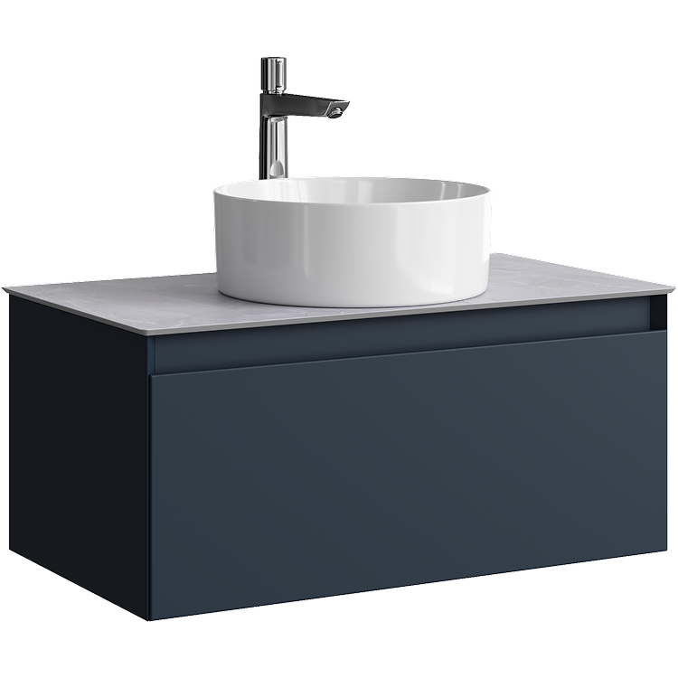 Подвесная тумба с одним ящиком 81 см, цвет серый со столешницей серый камень и накладным умывальником