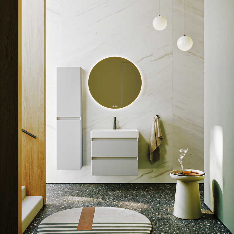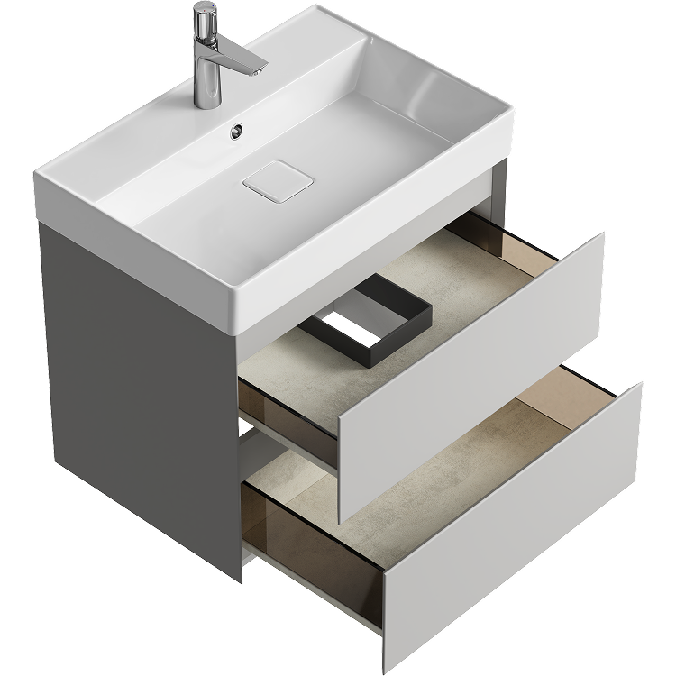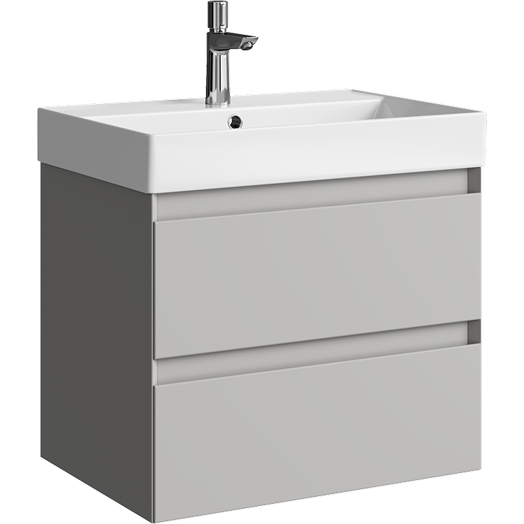 Подвесная тумба с двумя ящиками 65 см, цвет серый туман с умывальником