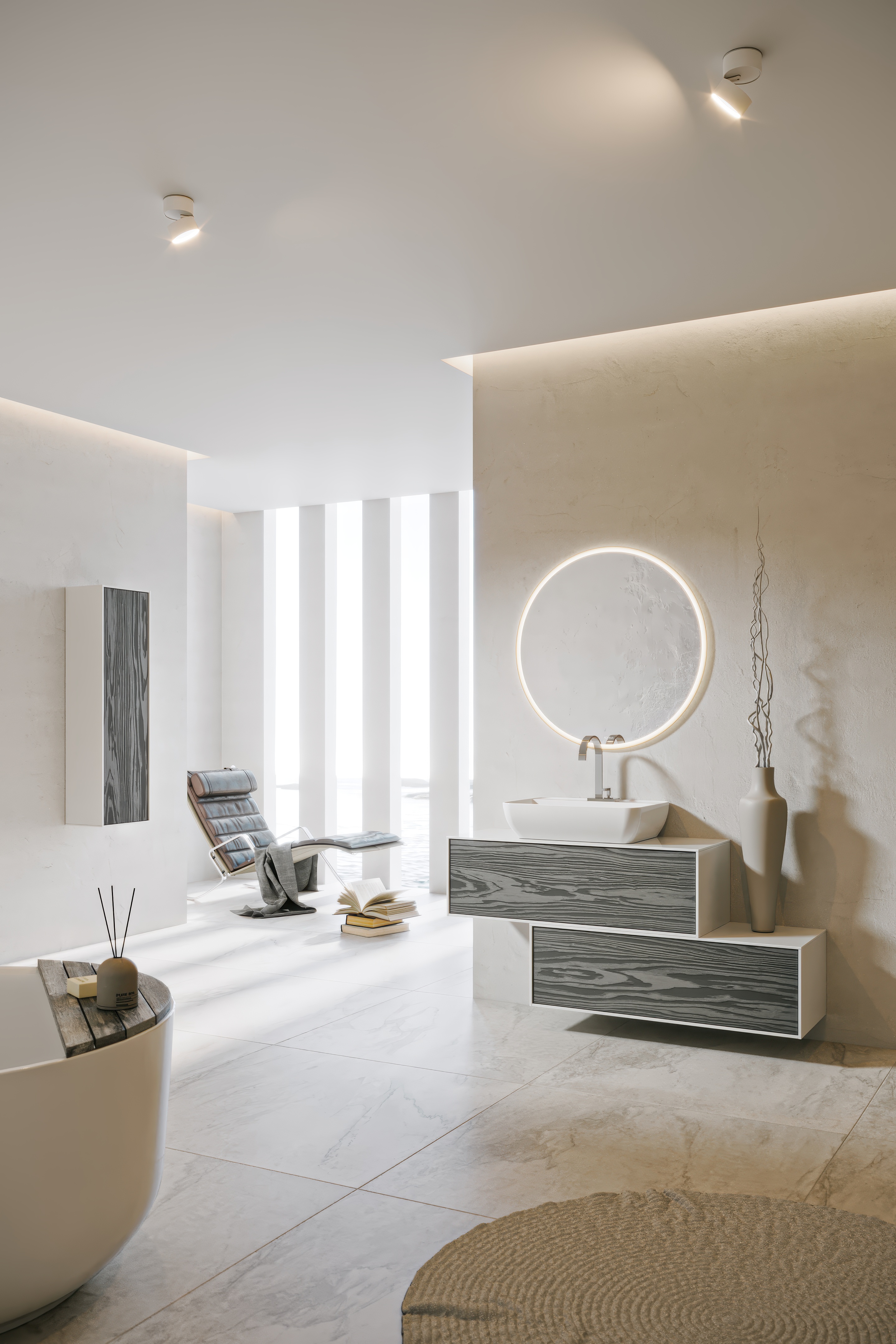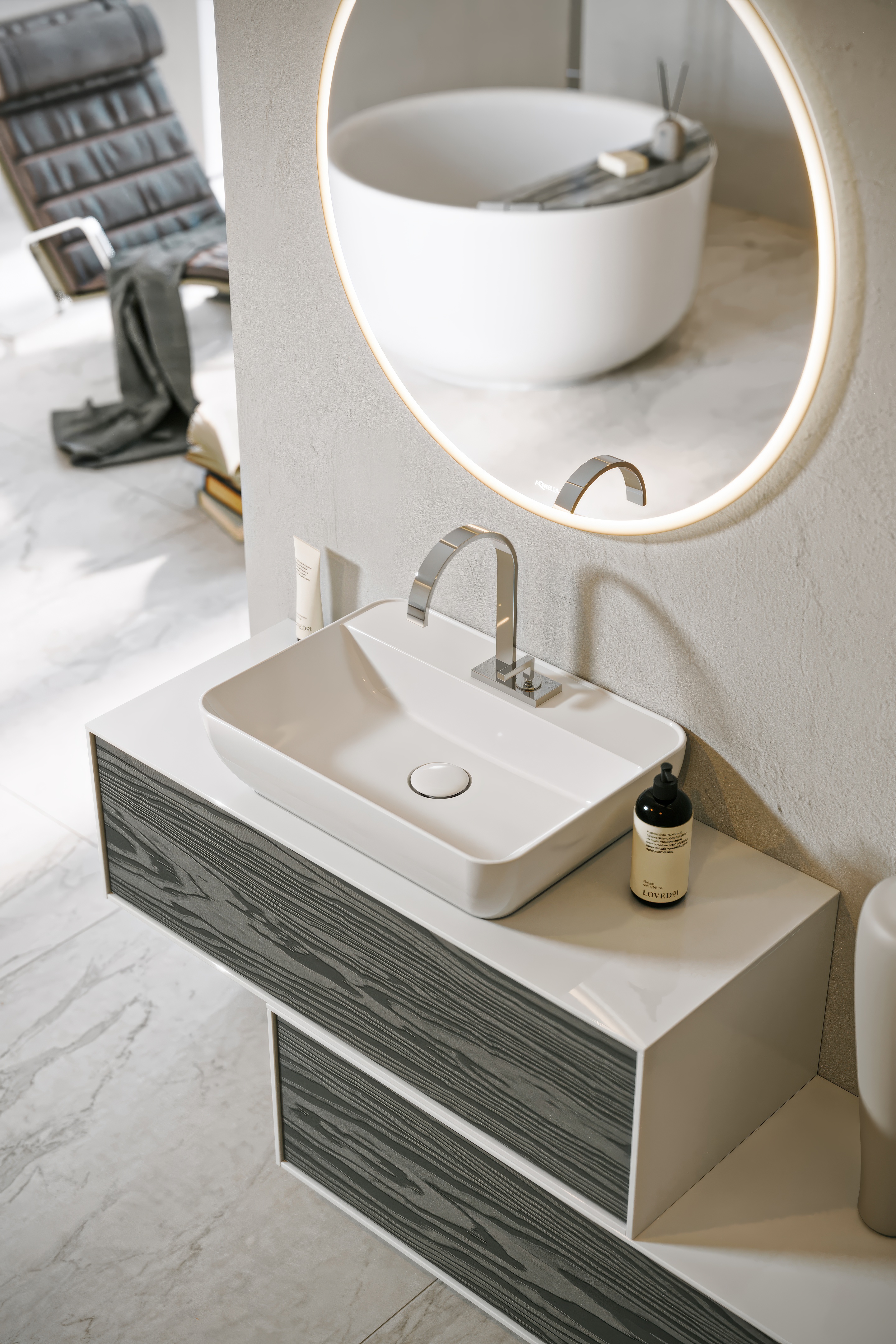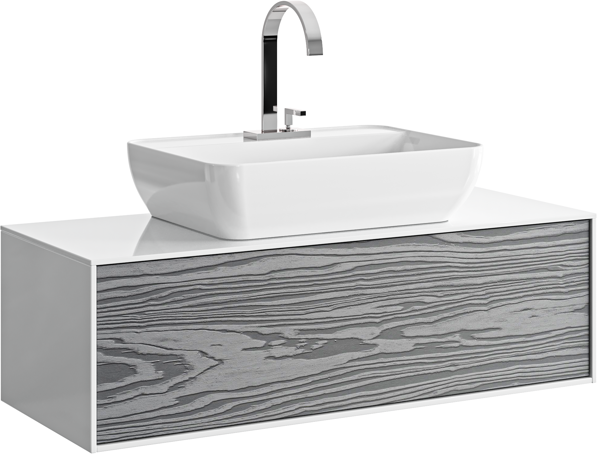 Подвесная тумба с одним ящиком в цвете миллениум серый с умывальником из литьевого мрамора.