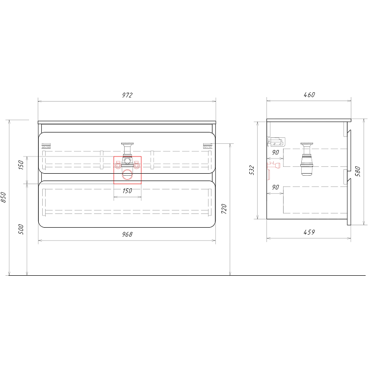 • Подвесная тумба 100 см.