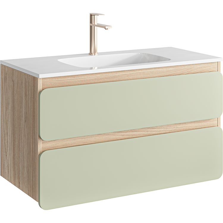 Подвесная тумба 100 с двумя ящиками с умывальником из литьевого мрамора, фасады в цвете шалфей зеленый