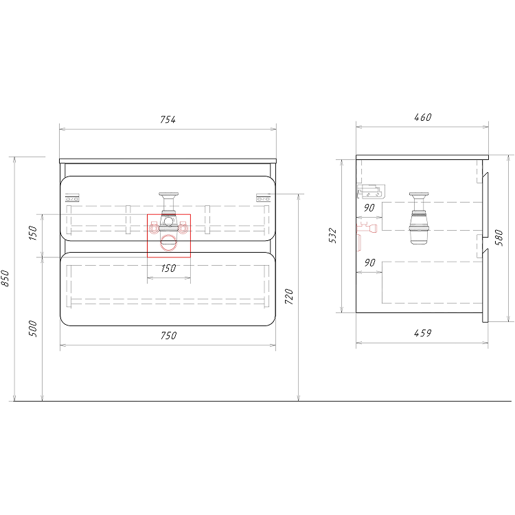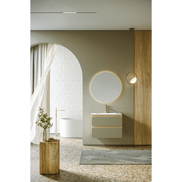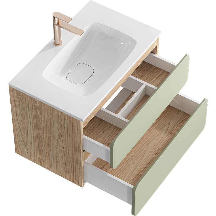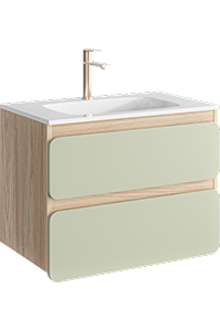 Подвесная тумба 75 с двумя ящиками с умывальником из литьевого мрамора, фасады в цвете шалфей зеленый