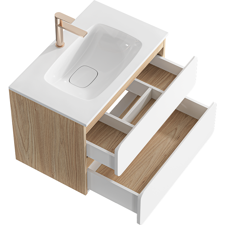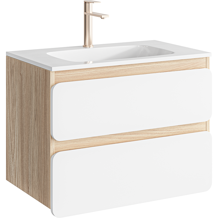 Подвесная тумба 75 см с двумя ящиками с умывальником из литьевого мрамора, фасады в цвете белый