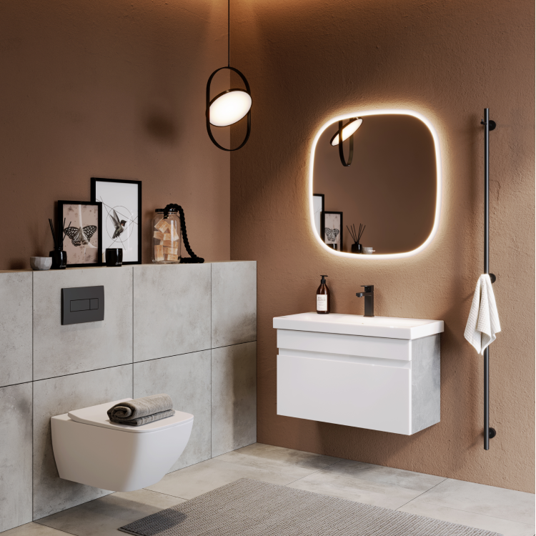 Благодаря необычной форме зеркало Aura становится ярким акцентом в любом помещении. Мягкая подсветка по периметру только усиливает впечатление и притягивает взгляд.