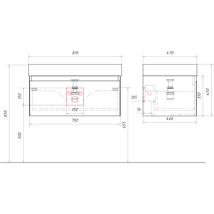 Ширина умывальника: 81