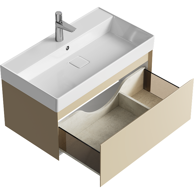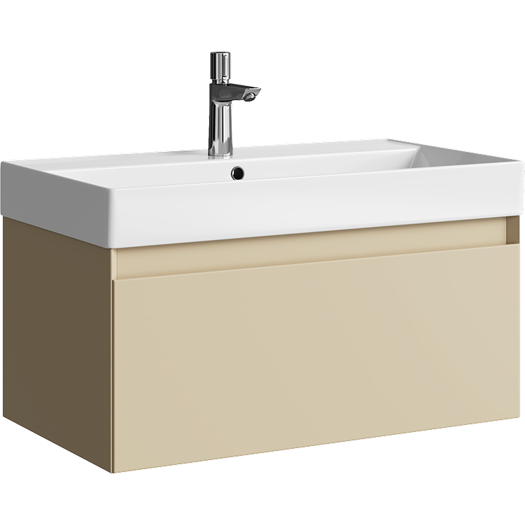 Подвесная тумба с одним ящиком 81 см, цвет морская дюна с умывальником