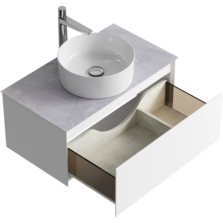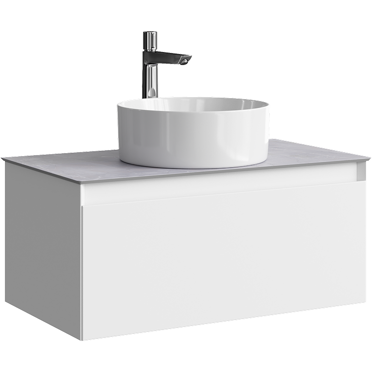 Подвесная тумба с одним ящиком 81 см, цвет белый со столешницей серый камень и накладным умывальником