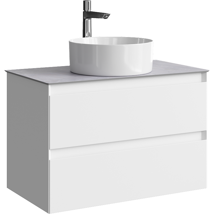 Подвесная тумба с двумя ящиками 81 см, цвет белый со столешницей серый камень и накладным умывальником