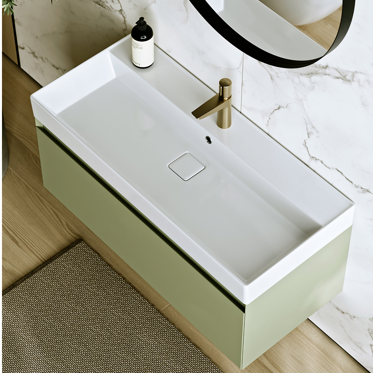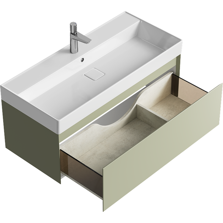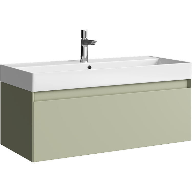 Подвесная тумба с одним ящиком 100 см, цвет зеленый шалфей с умывальником