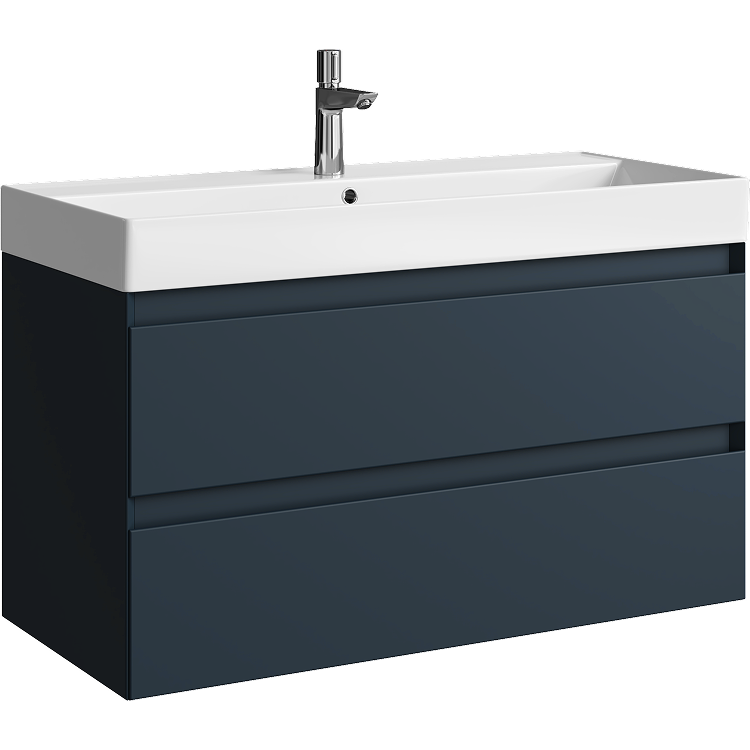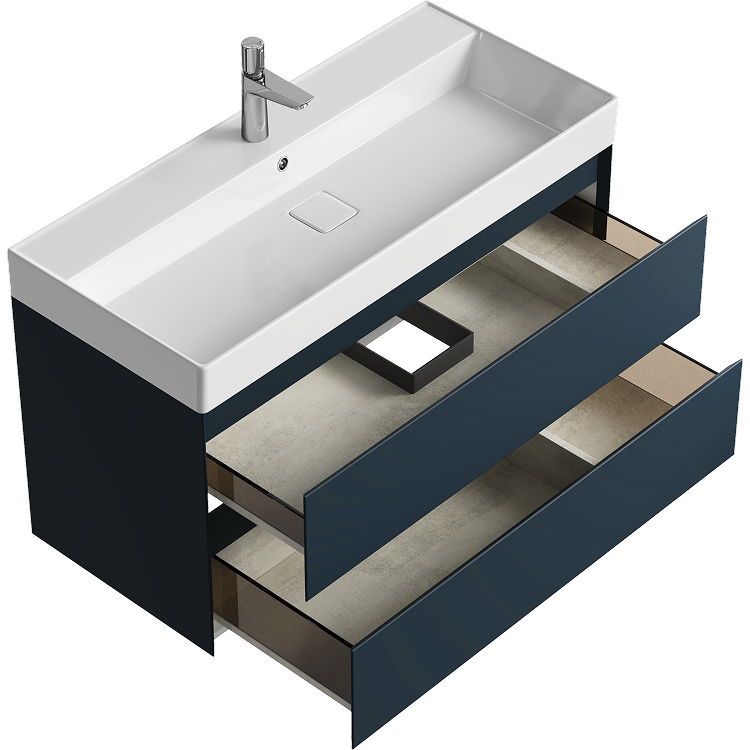 Подвесная тумба с двумя ящиками 100 см, цвет серый с умывальником