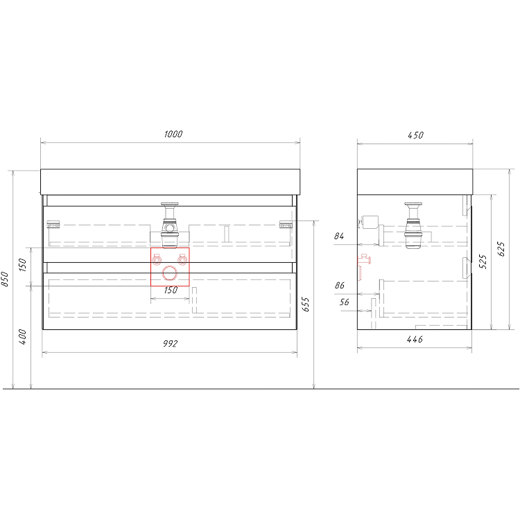 Подвесная тумба 100 см