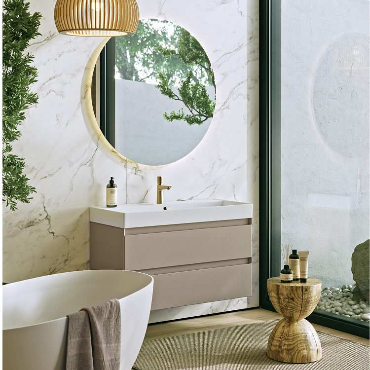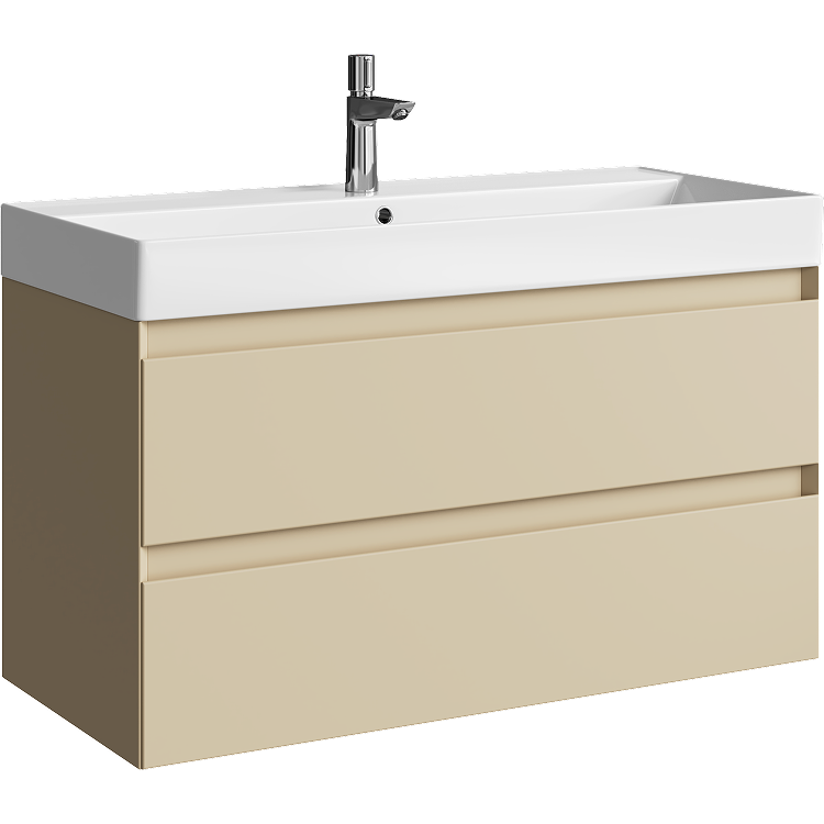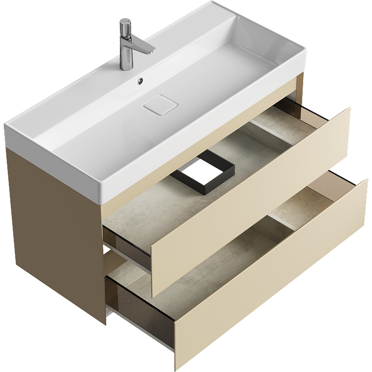 Подвесная тумба с двумя ящиками 100 см, цвет морская дюна с умывальником
