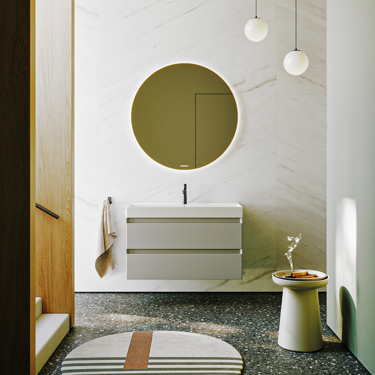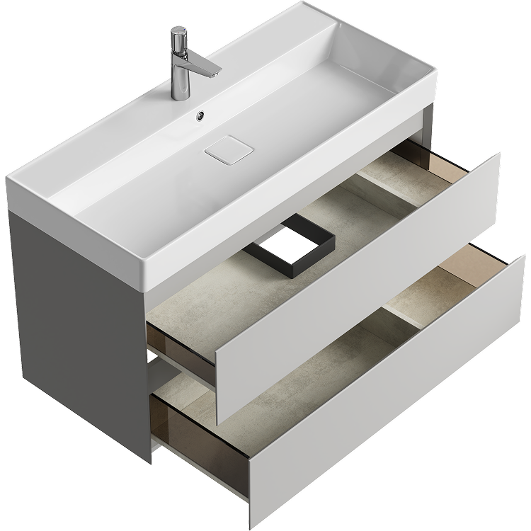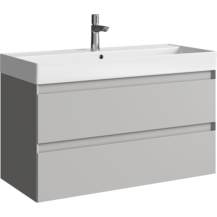 Подвесная тумба с двумя ящиками 100 см, цвет серый туман с умывальником