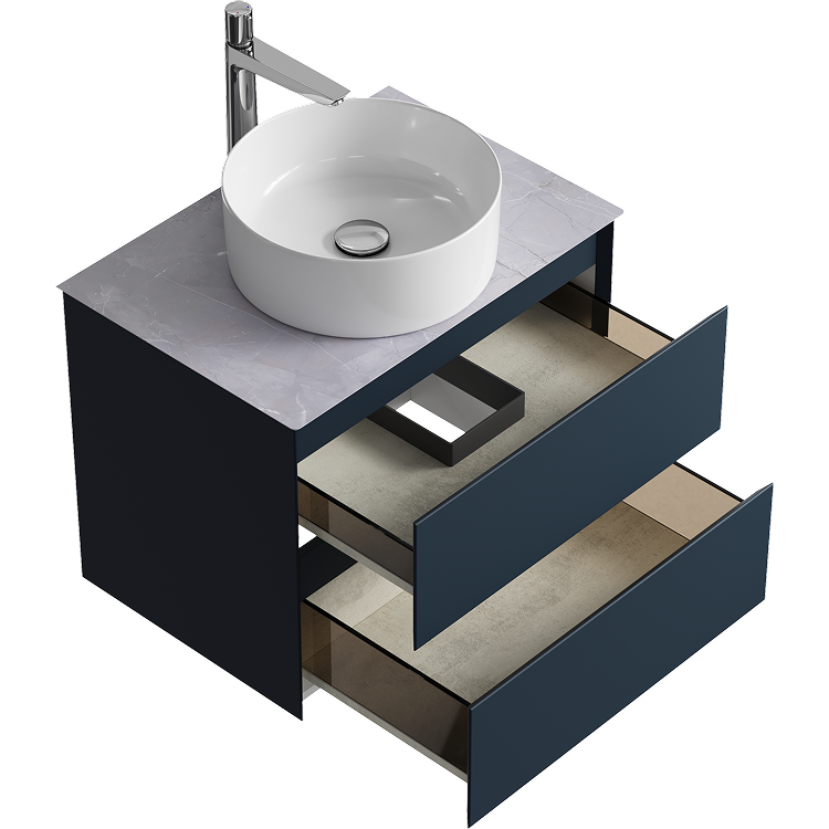 Подвесная тумба с двумя ящиками 65 см, цвет серый со столешницей серый камень и накладным умывальником