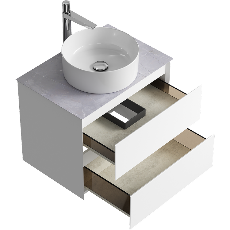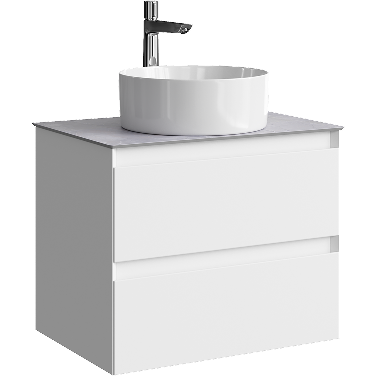 Подвесная тумба с двумя ящиками 65 см, цвет белый со столешницей серый камень и накладным умывальником