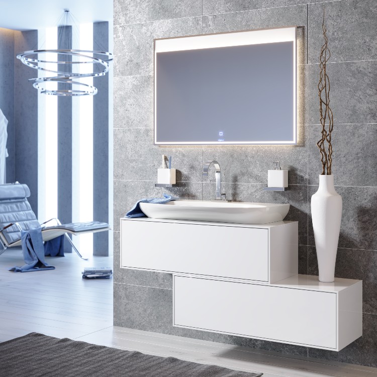 Зеркало со светодиодной подсветкой,сенсорный выключателем и системой обогрева, противодействующей его запотеванию.