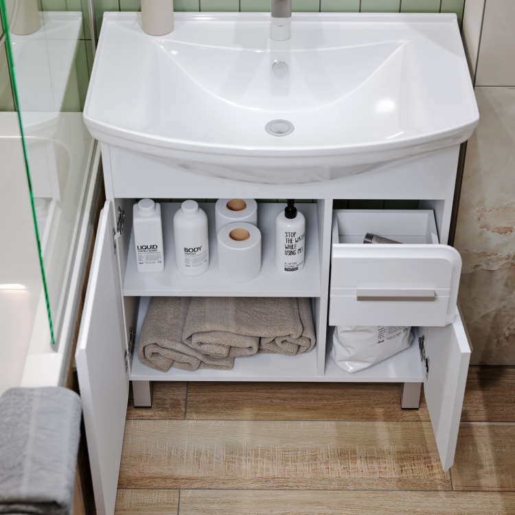 Напольная тумба с двумя дверьми и одним ящиком с умывальником