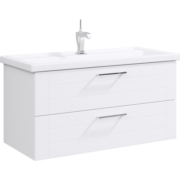 Подвесная тумба в белом глянцевом цвете с двумя ящиками с умывальником