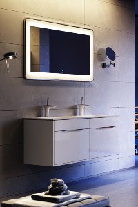 Подвесная тумба с двумя основными ящиками, двумя потайными ящиками, скрытыми за фасадами. Цвет белый гдянец. В комплекте умывальник с двумя чашами из литьевого мрамора