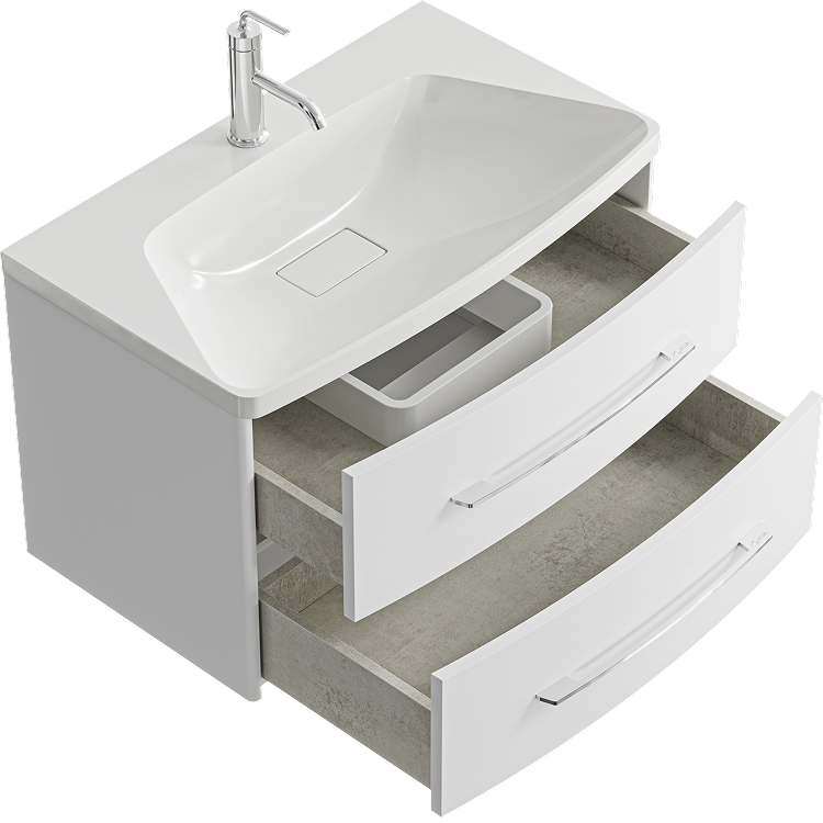 Коллекция Neringa – это сольное выступление подвесной тумбы Neringa шириной 80 см с изогнутым фасадом.