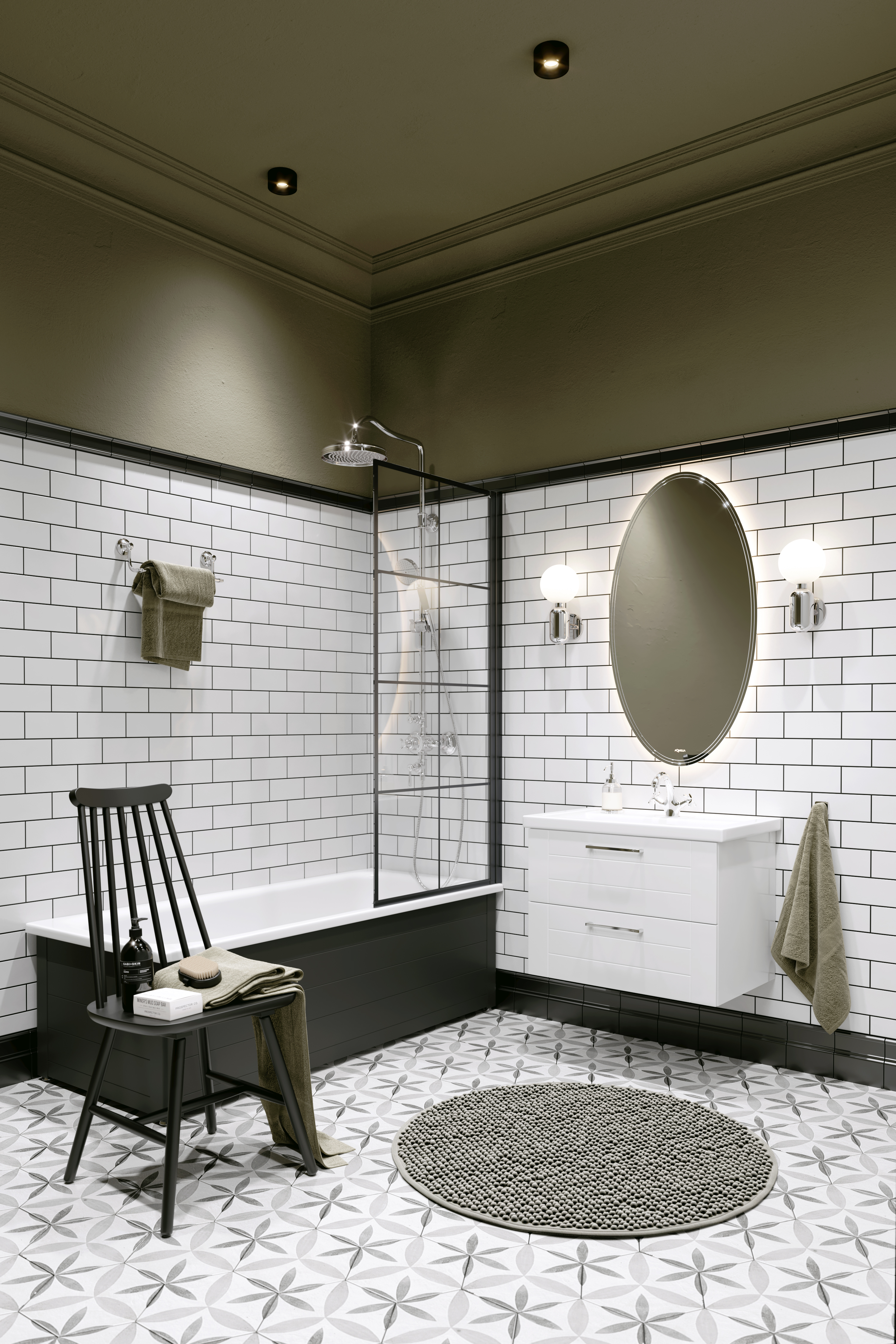 Изысканная и элегантная форма зеркала в виде эллипса дает хороший обзор,