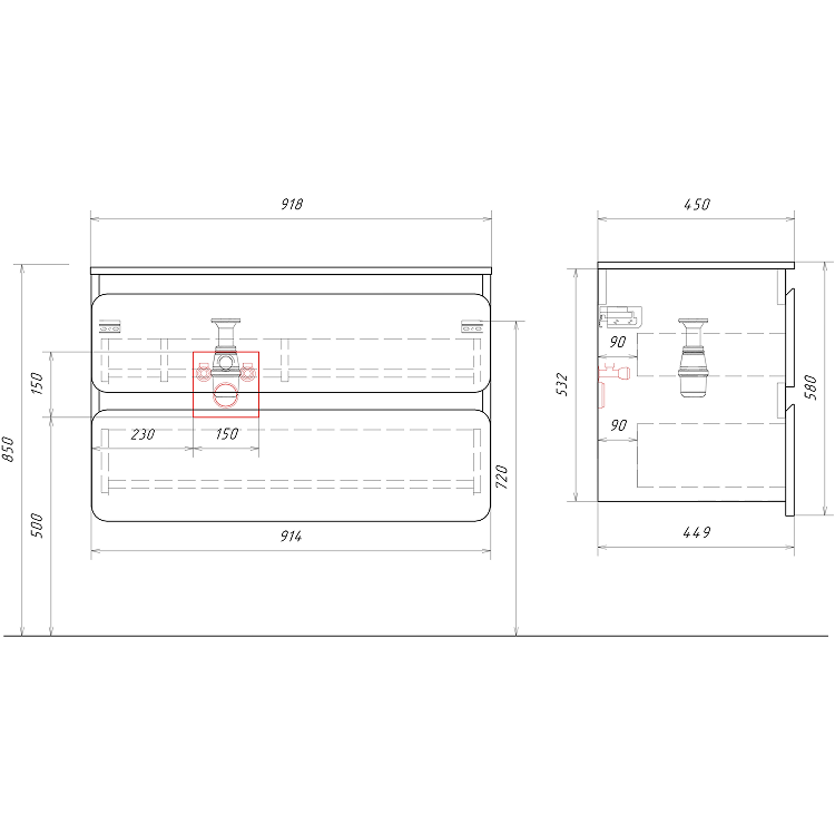 • Подвесная тумба 90 см.