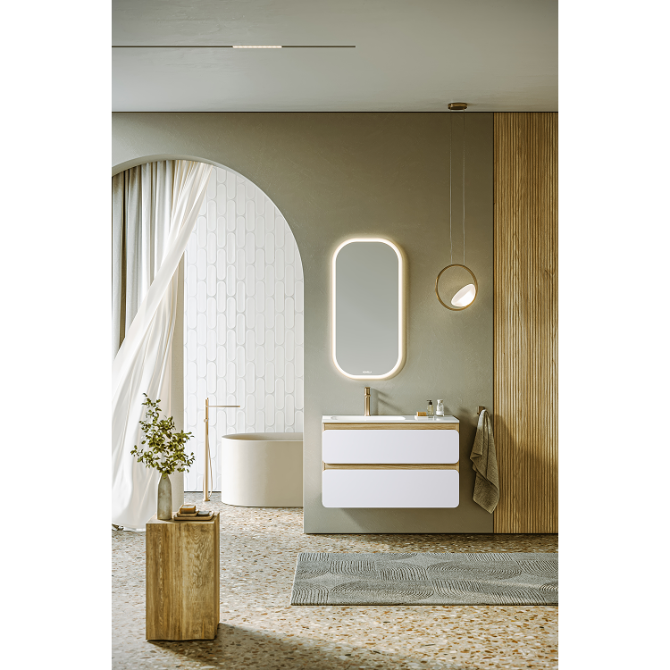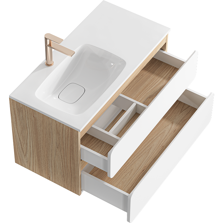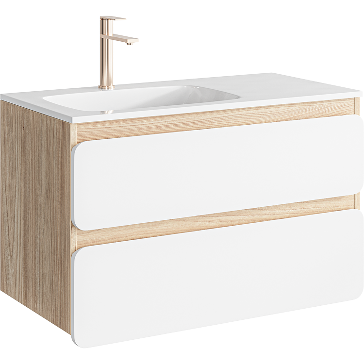 Подвесная тумба 90 см с двумя ящиками с умывальником из литьевого мрамора, фасады в цвете белый