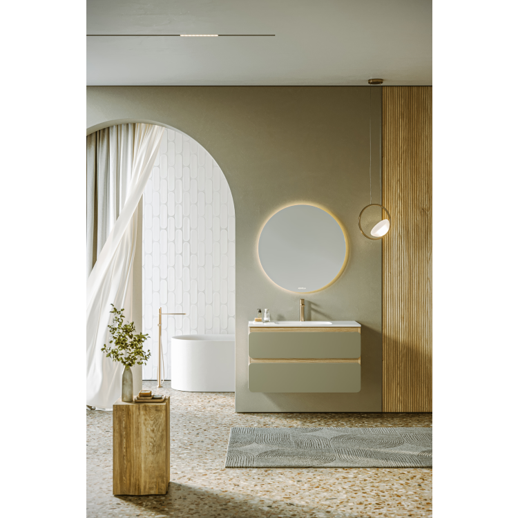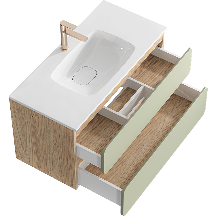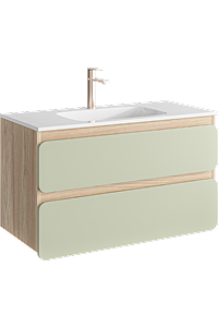 Подвесная тумба 100 с двумя ящиками с умывальником из литьевого мрамора, фасады в цвете шалфей зеленый