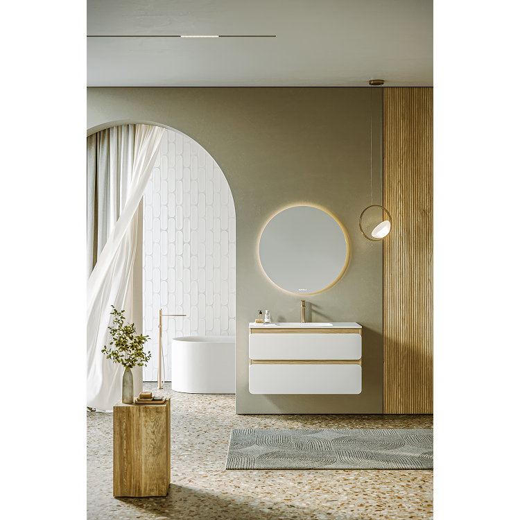 Подвесная тумба 100 см с двумя ящиками с умывальником из литьевого мрамора, фасады в цвете белый