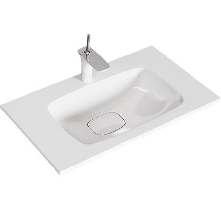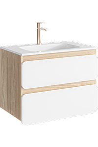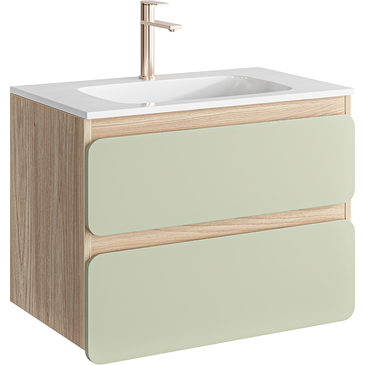 Подвесная тумба 75 с двумя ящиками с умывальником из литьевого мрамора, фасады в цвете шалфей зеленый