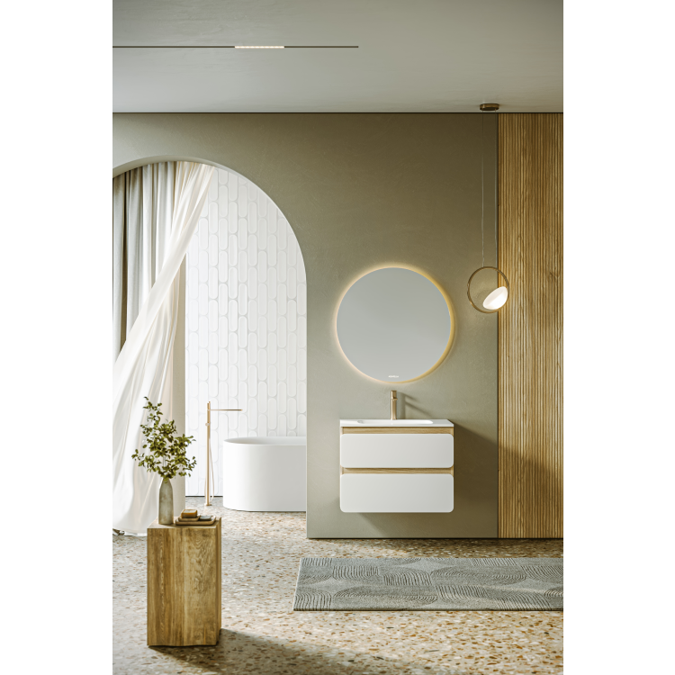 Подвесная тумба 75 см с двумя ящиками с умывальником из литьевого мрамора, фасады в цвете белый